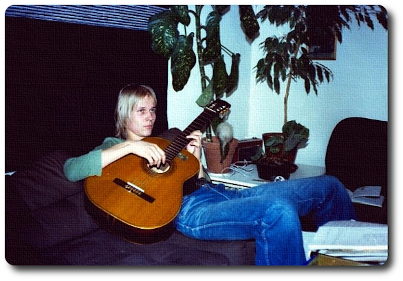 Antsu soettelj kitaroo melekein aena kun se vuan sai sellasen käsiinsä, ja harjottelj tuntikaasia päevässä soittamistae, kuten ylläolevassa kuvassahhiin; siinä hän, tapansa mukkaan, rämpyttellöö minun kitarallaen, tutkimattomin pojanilimein: tilu-lilu-lilu-loilaa. Antsu opiskelj oekeeta - eli sitä hienompee musiikkia - ja laalo eukkonsa kanssa mm. Kalsarit -nimisessä yhtyveessä, joka pyrki esittämmään sellaesta taeteellisempoo, monjiänistä musiikkia. Yliopistoväellä on niät aena ollut tuollaesia omituisija taepumuksia, josta esmerkkinä olokoon vaekkapa Semmarit, taekka sitten erilaeset kurkkulaalantakokkoonpanot, ja se semmoset. Tuo maenittu yliopistomualima on ihan täynnäe enemmän tae vähemmän sisäänlämpiävvee systeemijä, jotka, kuka nyt mitennii, verkottuvat mualimaan. Usijoissa mualiman yliopistoessa öristään kurkkulaalantoo, ja törisytettään Tikkeritootta, ja ollaan tekemisissä aenae samallaesten ihmisten kanssa ympäri mualimoo, ja sitten sitä lähetelläen niille eemaeleja - pätö asian tiimoelta. Mitä erikoisempoo, sitä parempoo. Minä en ou ikinä piässynnä mukaan näehin sisäpiireihin, eikä minua niihin ou koskaan ies kutsuttukaan, ja niinpäe minnäi oun kulkenna ihan omija polokujaeni, jonka varrella seisovaet Tannerin Alhvreetti, Salomuan Hiski, ja lukuisa joukko vastaavanlaesia uuvempiae kansanartisteja. Antsusta tulj sittemmin jonninlaenen musiikkimaesterj, eli mussiikin piätoeminen opettaja. Voi hyvinnii kuvitella hänen opettavan jollekin vinninuamaselle teinille kuinka oekein soetetaan se tilu-lilu-lilu-loilaa niinkuin se pittee soettoo, istuen paskanjääkässä asennossa, kitara polovien piällä, ja näppäellen samallae sen kielijä sormillae, kämmen aena täsmälleen siinäe oekeassa kulumassa kieliin nähten. Voin myös kuvitella senniin kuinka nämä samat vinninuamat alkavat lopulta Antsuakkii väsyttöö, ja mitenkä se tilu-lilu-lilu-loilaa käyp päevä päevältä aena vuan ankeammaksi, ja eräännäe päevänä kun Antsu kahtoo vessan peiliin, ja näkköö siellä vaenajan kasvot, kuten Peltosen Juhani kerran rommaanissaan, niin jo siittä tietee kuoleman tulleen lähelle. Tae sitte voes käyvä toesinnii: mies voes vaekka liityvä yhytyveeseen Tysharmoonninen viila ja kakku, ja rikastuttoo kihveljmussiikin kenree. Kukkaan ei voe tarkalleen tietee miten ihmisten tässä mualimassa voep käyvä. Esiinnyin minnäe kerran itsekkii erräännäe vuotena Antsun ja hänen sillooesen eukkonsa kanssa koulujen ala-asteilla, ja niissä myö hoelattiin esmerkiksi laalua: etkös ymmärrä, vaekka sulle kerroin..., ja muitahhii hupaisia lastenlaaluja. Ehtotin erreessä vaeheessa etkös ymmärrä - laaluun tääsin uusia sanoja, kuten ...että sinullehhiin kenitualini näätän... ja niin etelleen ja etelleen, mutta en suanna vastakaekua. Antsun eukko oli tuolloen niät vappautumiskehityksesä siinä vaeheessa, että ei ymmärtänyt ollenkaan tuollaesta kaaniin laalun pillaamista. Kun lopettelimme laalamista, pennut ryntäsivät ulisten ulos, ja pianpa lapset jo leikkivättiin koulun pihalla läjjee ja jyskäpiätä, ja muita lapsuuven riemullisia leikkejä. Kaekistae noestakii lapsistae tulj aeka pian sohvaperunoitae, tae ylipaenoisia nuoria alkkoholisteja, joten turhaan mänj nettiin veisut. Ne oes voitu suoraan ajjoo koulun pihalle sitä jyskäpiätä tae läjjee leikkimään, ja unohtoo sinnei saman tien. Ajattelin täässä vuan sitähii, kuinka ne viettee kaakenlaista latuaekoo pentujensa kanssa, ja laettavat niitä palettikouluun - ja silti niistä tulloo ketaleita ja jumalan mieljharmeja. Päntiä ei siis syntynnäkään - ei aenakaan Antsun kanssa - ja tuskinpa sitä ies koetettiinkaan kovinkaan voemaperäsesti synnytteekkään. Antsua ei näet kiinnostanu laesinkaan se musiikki, jota itse koetin harrastee, kuten lappilaesten joikalaalut, ja uskoisinnii, ettei hää minun laaluistani mitään tiennytkään, sillä Kalsarien musiikki veti häntä yhä enemmän ja enemmän puoleensa. Kerran niät Kalsarit, aena Kalsarit - tae sitte, jos vuan on onni myötä, Tysharmoonninen viila ja kakku. Oikeastaan aenut musiikkinlaji, jota hän ies hieman yrittelj harrastee minun kanssaen olj tuo Amerikan neekereijen räk -musiikki, jota Rossmannin Steehvani kävi kerran esittelemässä Jyväskylässä. Stehvanin laalamista piiseistä on minun mieleeni jiäny erityisesti Vestaappolj, jonka myös opettelin itse soettamaan. Jostaen syystäe Antsu ihhaelj Kuuperin Alissija, ja Pohjolan Pekkoo, sekä kuuntelj paljon Tommi -musikkaalija - kun minä tuas en ihhaillu kettään, enkä tuntenna juur laenkaan populaarjmusiikkia. Muistan kun Antsu kertoilj, posket innostae punottaen, Pohjolan Pekan hienoista levyistä, ja harakka siitä ja siitä, ja kuinka minä siinnäe häntä myötäelin: hienoja olj passokulut, hienoja - vaekken ollu koskaan ies kuullu mieheltä yhten yhtä levyä, mutta olj se vuan jotenniin niin mukavoo, että ies joku olj innostunut jostain, ja olj ymmärtävinään jottaen hieman paremmin kuin muut. Jumptsipum-pum. Mittee niistä pallokuluista ymmärsi kun Vilips Juunior -reteotkaan eivät kyenneet soettamaan kovinkaan matalija taajuuksia. Saihan sitä vähän itsekin innostuttua. Minä en kuitenkaan oekeesti tikannut Kalsareista, tai pialoipokkuista, ja ratiostannii minä kuuntelin aena vuan sitä mitä sieltä millonnii sattu tulemaan, ja ymmärsin enklanninkieliset sanattiin ylleensä tääsin viärin: Lucy in the sky is dying. Allaolevast seekasetin etiketistä varmaannin jo sinnäi niät, että oun myöhemmin korjanna kohan is dying sanoillae with diamonds, ja voet piätellä siittä myös senniin, mihin ajankohtaan asettuvat omat laaluni Kuka on täättänyt kärsimysten maljan (eli Turman vaanut) ja Puut pitkät veistetyt sae laevan muoton (eli Laeva), ja noihin aekoehin oun myös laalanna laalun The House Of The Rising Sun, sekä Hän on voettamaton, kae sen tietät (eli Voettamaton). Etiketti kertoo myös, 